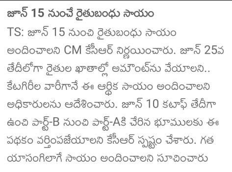 రైతుబంధు మార్గదర్శకాలు విడుదల